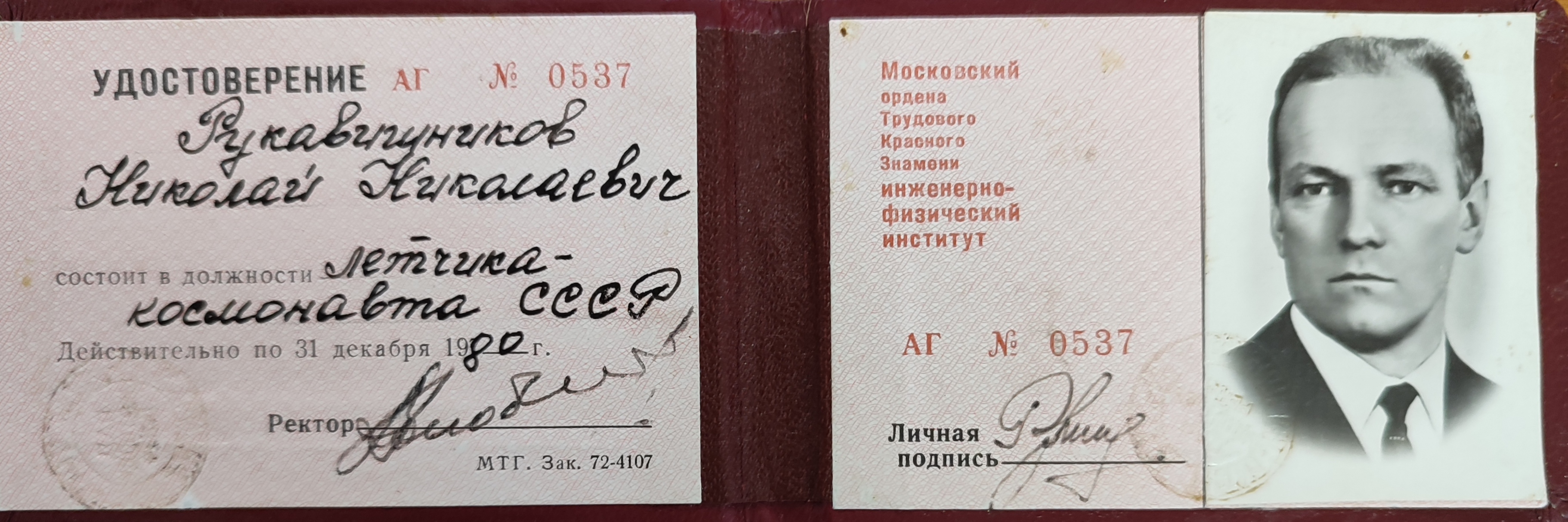 Удостоверение для прохода в Московский Инженерно-физический институт летчика-космонавта СССР Рукавишникова Н.Н.
