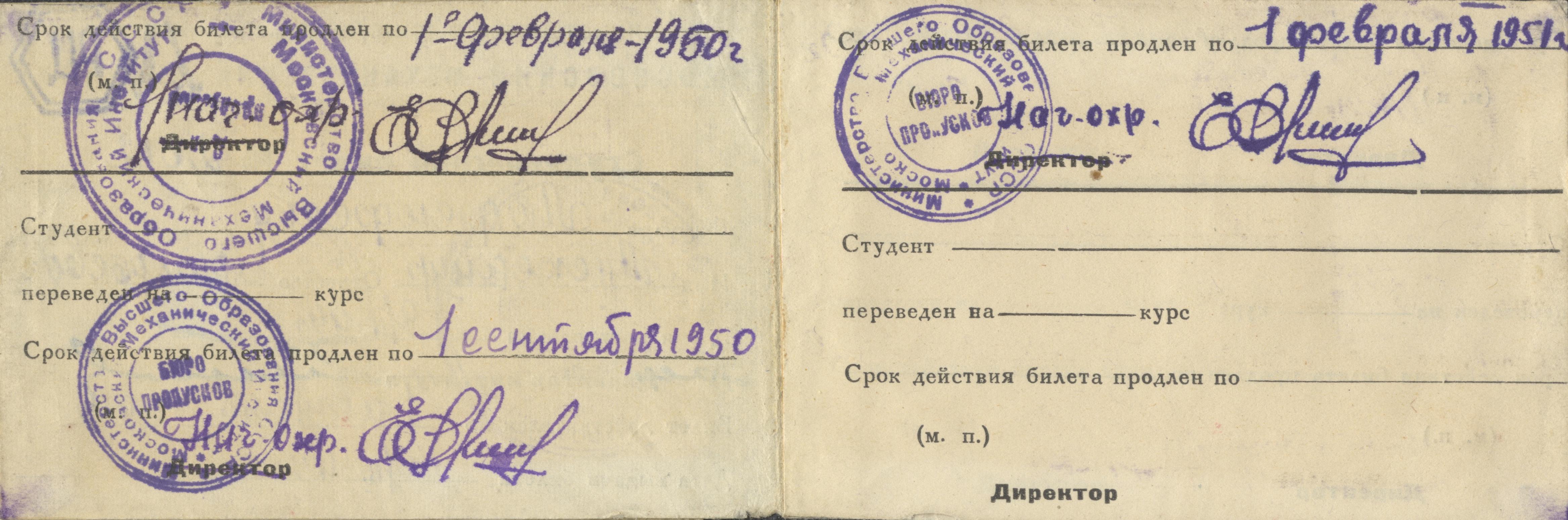 1949 Студенческий билет Московского Механического института ММИ (название МИФИ до 1953 г.)